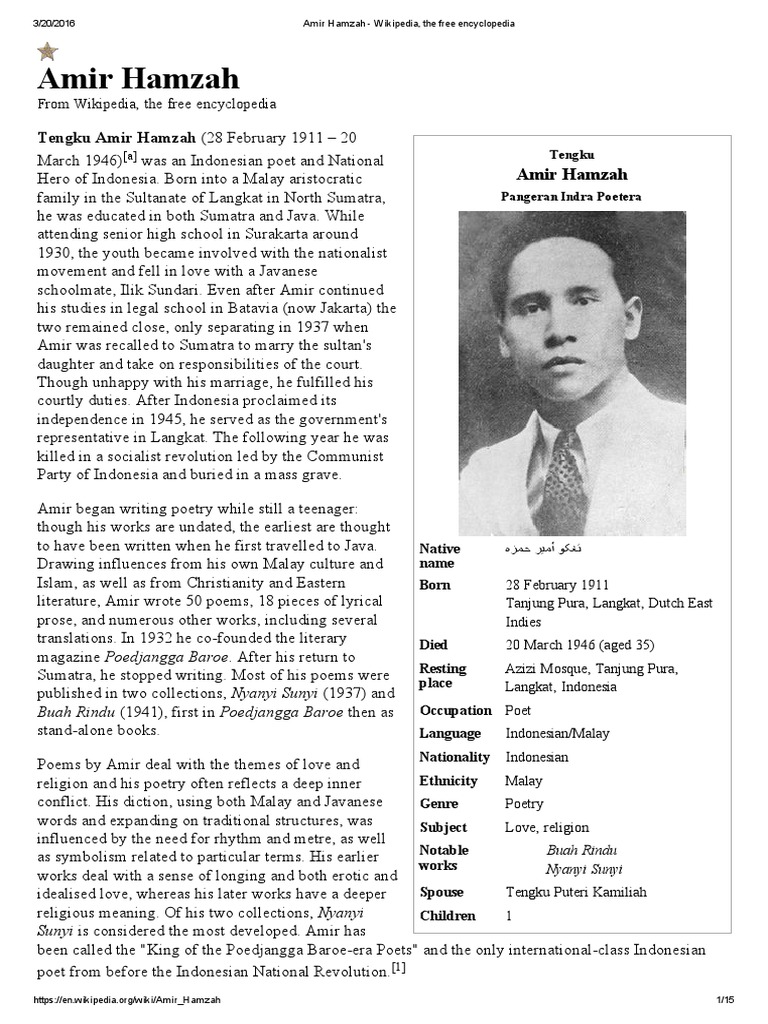 Kay brooksantonio brooks, 32juanita coleman, 81. Saya akan membantu anda membangun bisnis berskala international yang dapat mengantarkan anda ke fase. Hikayat amir hamzah is a malay literary work that chronicles the hero by the name amir hamzah. Join to listen to great radio shows, dj mix sets and podcasts. Find amir hamzah's contact information, age, background check, white pages, property records, liens, civil records, marriage history & divorce records. This book is one of the two hikayat mentioned in sejarah melayu as one of the hikayat used to encourage malay warriors in their fight against invading portuguese in malacca in 1511. Последние твиты от amir hamzah (@amirhamzahsabri). Marian shrine of annai velangkanni. Tapi juga sekaligus hiruk pikuk indonesia di masa amir hamzah hidup. Amir hamzah awalnya ditahan di sebuah rumah bekas tahanan kempeitai di tepi sungai mencirim, binjai. Halaman timeline artikel terbaru profil amir hamzah penulis media online di kompasiana.com. Born into a malay aristocratic family in the sultanate of langkat in north sumatra, he was educated in both sumatra and java. Amir hamzah yang bernama lengkap tengkoe amir hamzah pangeran indra poetera lahir di tanjung pura, langkat, sumatera timur, hindia belanda, 28 februari 1911 (meninggal di kwala begumit, binjai, langkat.